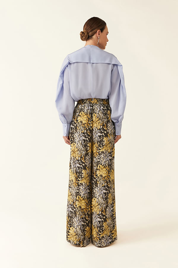 CAMISA MANGA LONGA PRISCILA. Camisa de seda manga longa, com mangas com volume e pregas na frente. Decote redondo.