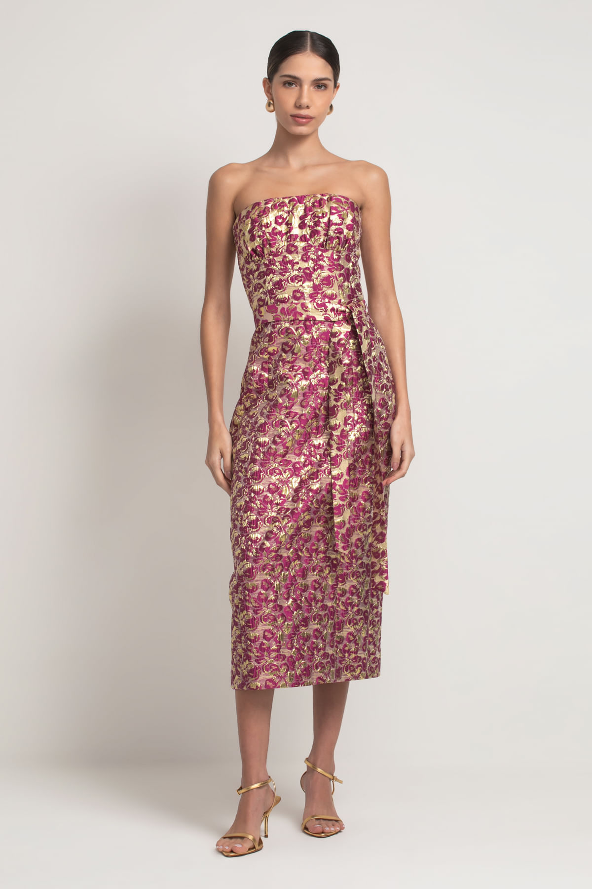 VESTIDO MIDI JULIA. Vestido midi em Jacquard, sem alças com decote reto, faixa amarração e fechamento por zíper nas costas. ATENÇÃO POSTAGEM EM ATÉ 4 DIAS ÚTEIS! CASO QUEIRA EM OUTRO TECIDO, BASTA CLICAR NO BOTÃO DE WHATSAPP NO CANTO DIREITO DA TELA. UMA DE NOSSAS VENDEDORAS VAI ENVIAR NOSSO CATALOGO DE TECIDOS.